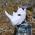 After purchase, click the download link in the confirmation email to save the PDF to your computer. Then open it in a PDF reader (e.g., Adobe Reader) and print on paper or card of your choice (A4 or US Letter Paper). You can then glue your templates to thicker card, cut out, score, and assemble your mask using the included instructions.